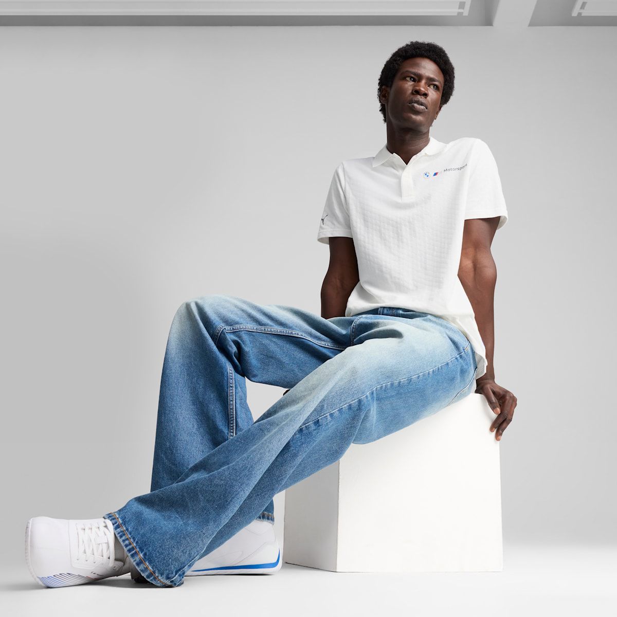 Elevate your motorsport style with this sleek BMW Motorsport Polo T-Shirt by Puma. Crafted from high-quality cotton fabric, this white polo offers a clean and athletic look, featuring the iconic BMW M Motorsport logo on the chest alongside the Puma cat emblem. The classic polo collar and short sleeves provide a timeless silhouette, perfect for casual wear or trackside presence.